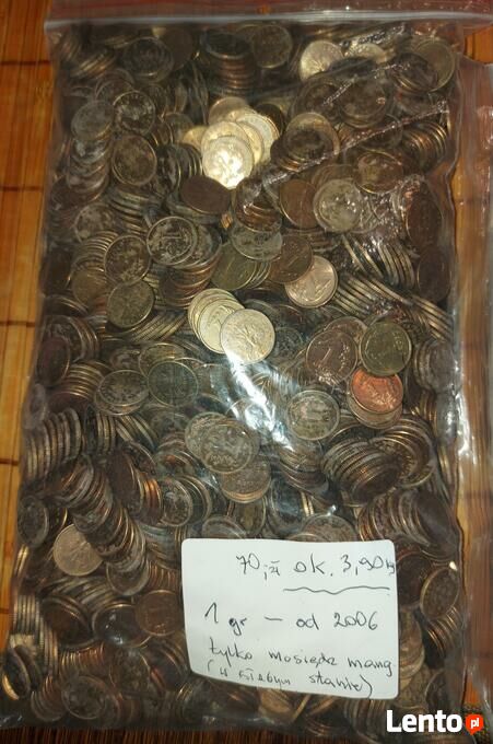 zbierane przez wiele lat, słaby stan -dlatego cena prawie ceny złomu, w tej ilości tzn ok 5,50 kg aż 1,5 kg stanowią monetki z datami do 2005 r., resztę stanowią wyprodukowane od 2006 rokuSprawdź zainteresowanie tym ogłoszeniem