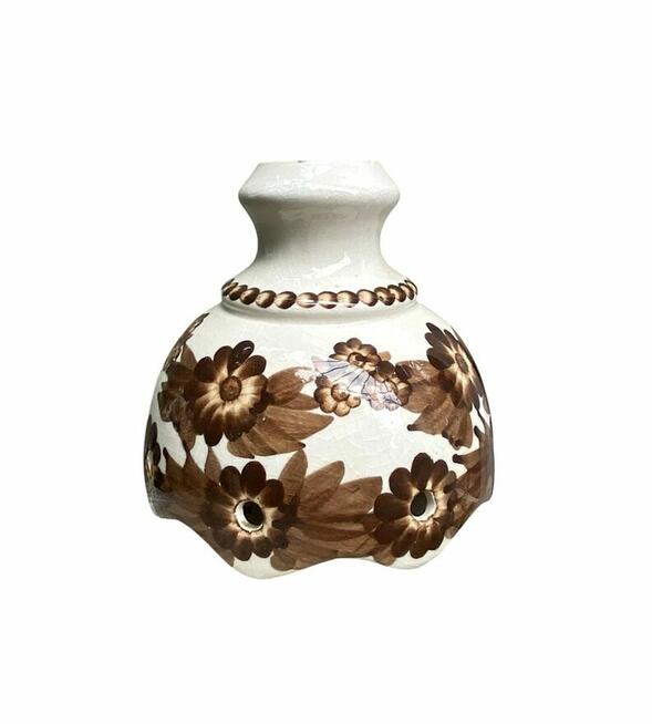 Piękny vintage'owy klosz ceramiczny z charakterystycznymi brązowymi zdobieniami ...