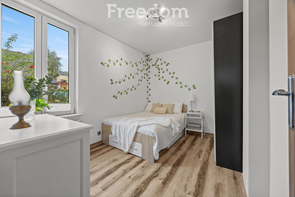 Na piętrze znajdują się 2 pokoje, kuchnia oraz druga łazienka.