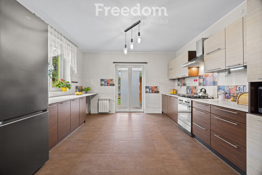 Na parterze znajduje się duża, funkcjonalna, otwarta kuchnia, do