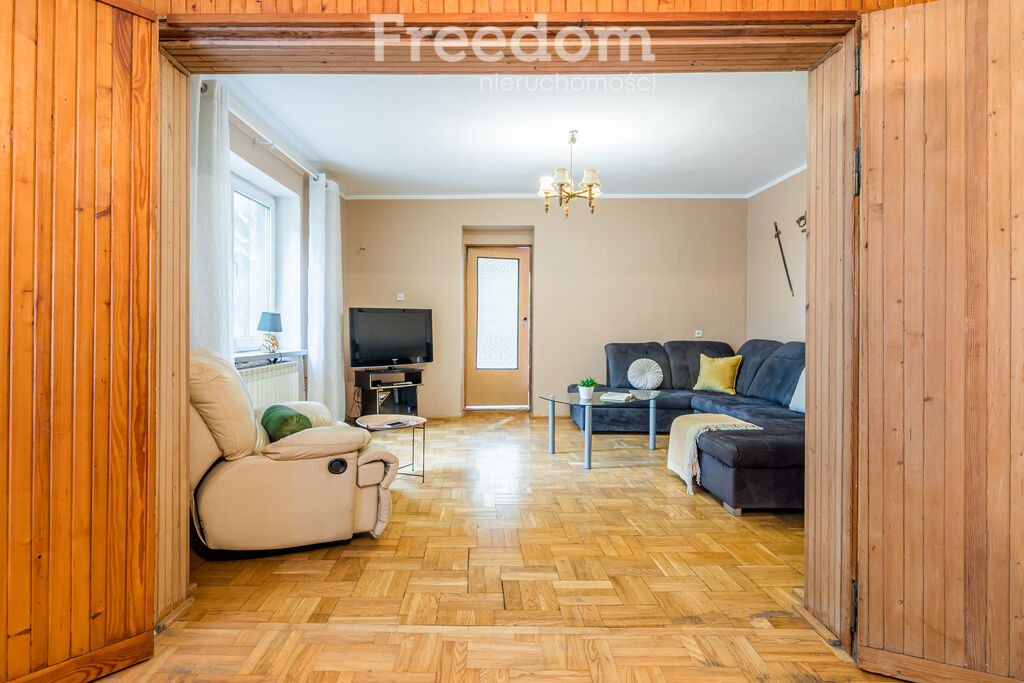 - podwójny salon dzienny z jadalnią oddzielony dwuskrzydłowymi