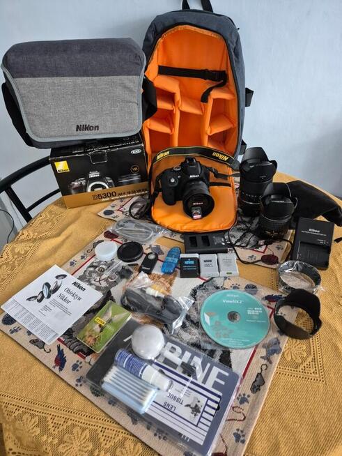 Witam sprzedam duży zestaw Lustrzanka Nikon D5300 plus 3 obiektywy Nikkor Nikon 18-55 stalka 35mm z silnikiem Nikkor Nikon i ...