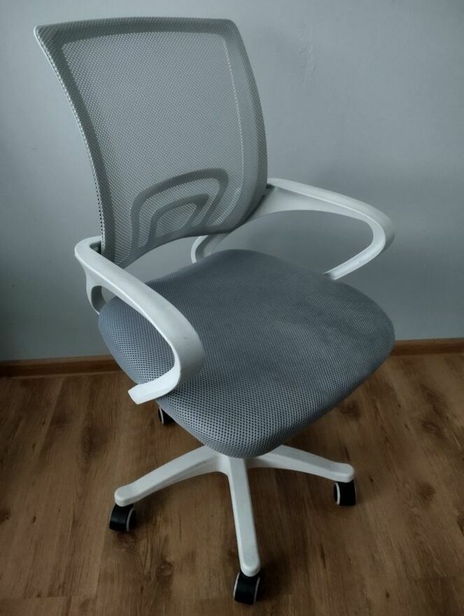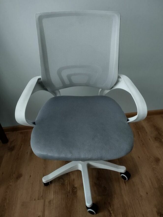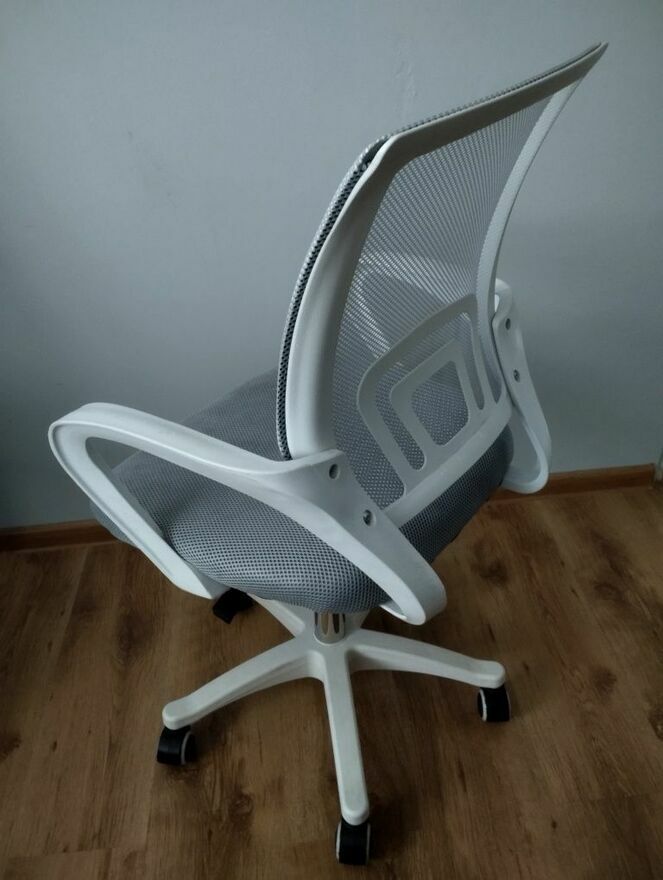 Nowoczesny, obrotowy fotel biurowy z siateczkowym oparciem. Zapewnia wygodę i dobrą wentylację podczas długich godzin pracy przy biurku. Solidna, biała konstrukcja oraz regulowane elementy pozwalają na dostosowanie fotela do indywidualnych potrzeb.Fotel dla dziecka/nastolatki.