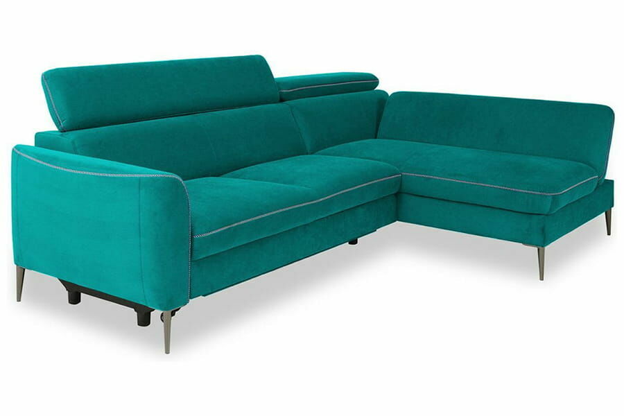 Bogato wyposażony(ruchome zagłówki) narożnik, który urzeka swoją wygodą,starannością wykonania oraz zachwycającym designem. Posiada funkcję spania z ukrytym pojemnikiem na pościel i jest zaprojektowany z myślą o długotrwałym użytkowaniu, dlatego też użyte materiały są najwyższej jakości.