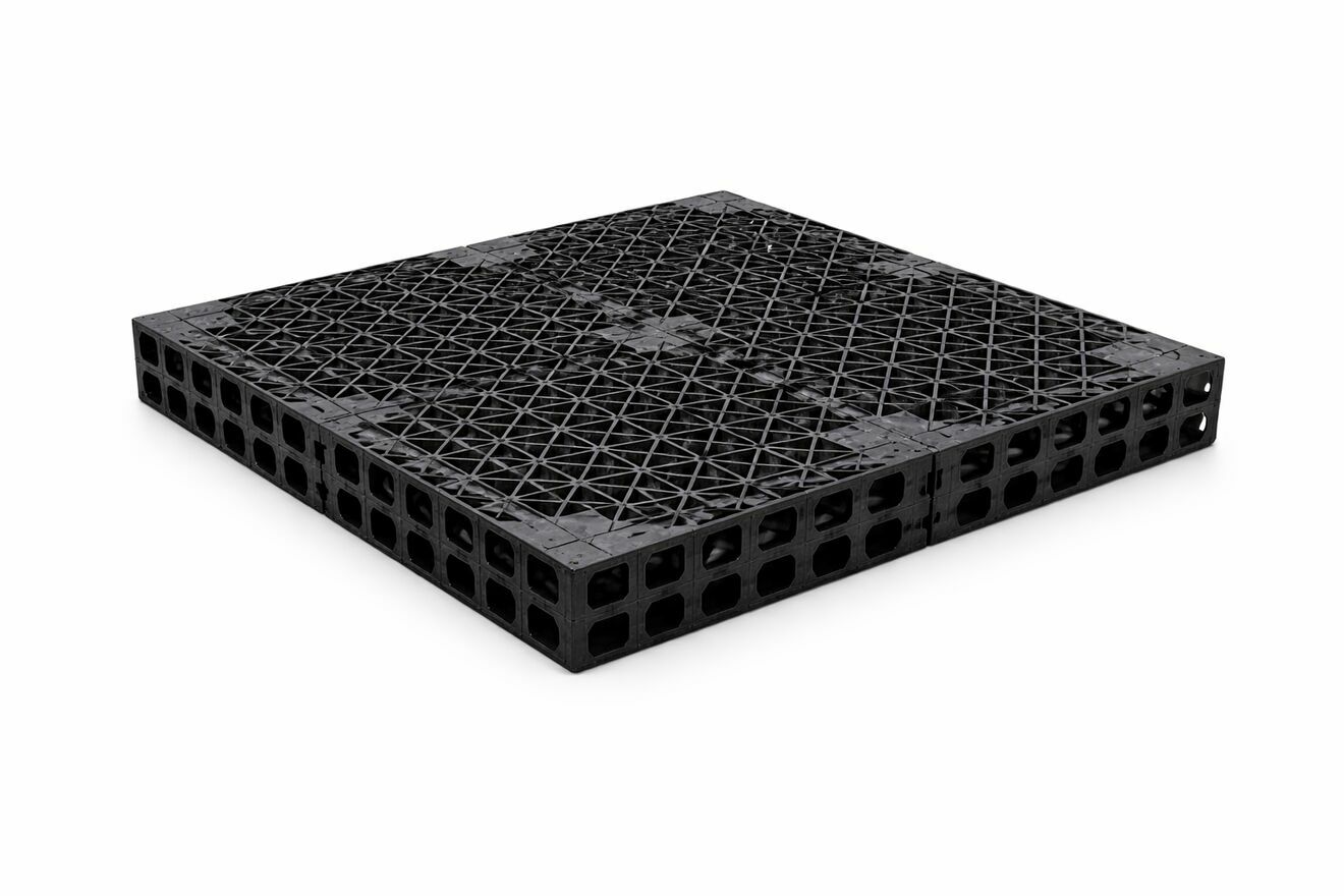 Modułowy drenaż rozsączający SPEED drain 60x60x5 pod boiska, bieżnie, korty, place zabaw i siłownie zewnętrzne – system retencjiModułowa skrzynka drenażowa / rozsączająca 60×60×5 cm do profesjonalnego odwodnienia zewnętrznych obiektów sportowych. System retencji i infiltracji wód opadowych o bardzo wysokiej wytrzymałości mechanicznej.
