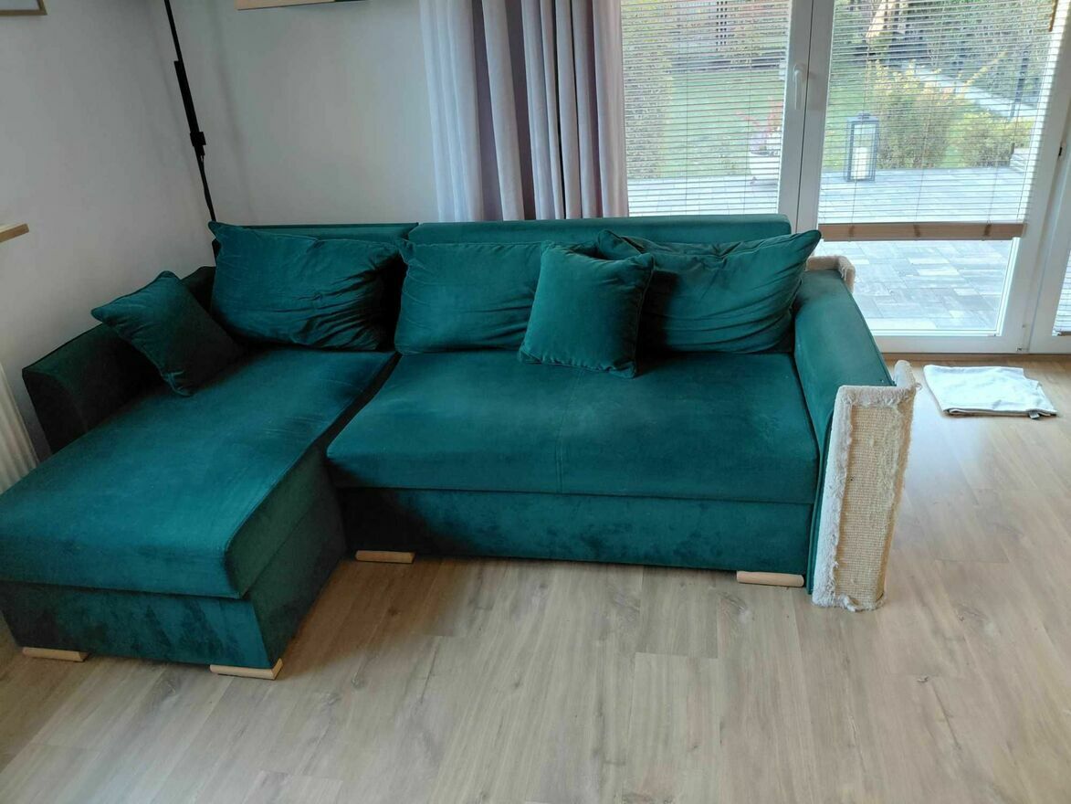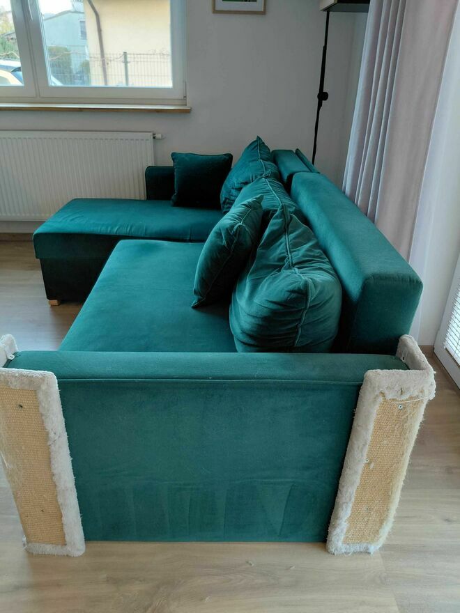 Mam do sprzedania prawie 5-letnią kanapę z funkcją spania i otwieranym szezlongiem, umożliwiającym przechowywanie rzeczy, kanapa jest w stanie ogólnym dobrym, materiał jest niezniszczony, służyła jedynie do siedzenia, jedyną wadą jest uszkodzony boczek kanapy (odpada), na tym samym boczku zainstalowane były drapaki dla kotów, pozostały widoczne ślady montażu (jak na zdjęciach). Transport we własnym zakresie. Oferta ważna do czwartku potem znika.Łukasz
