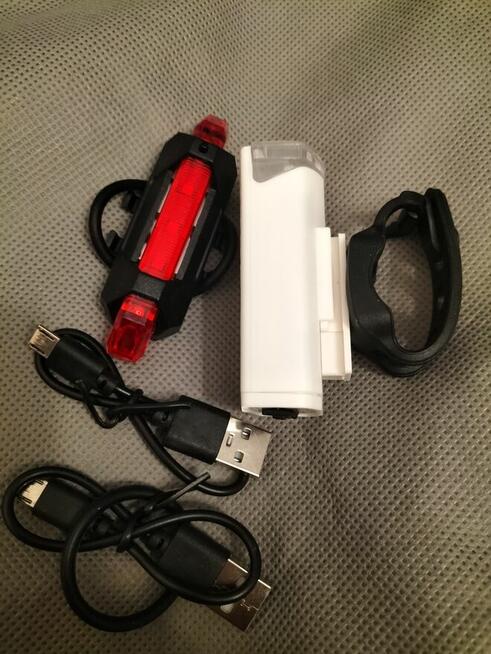 Komplet oświetlenia rowerowego przód i tył, ładowane USB . Kilka trybów pracy zarówno przód jak i tył