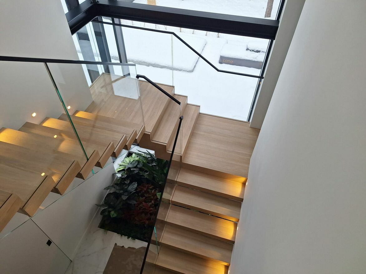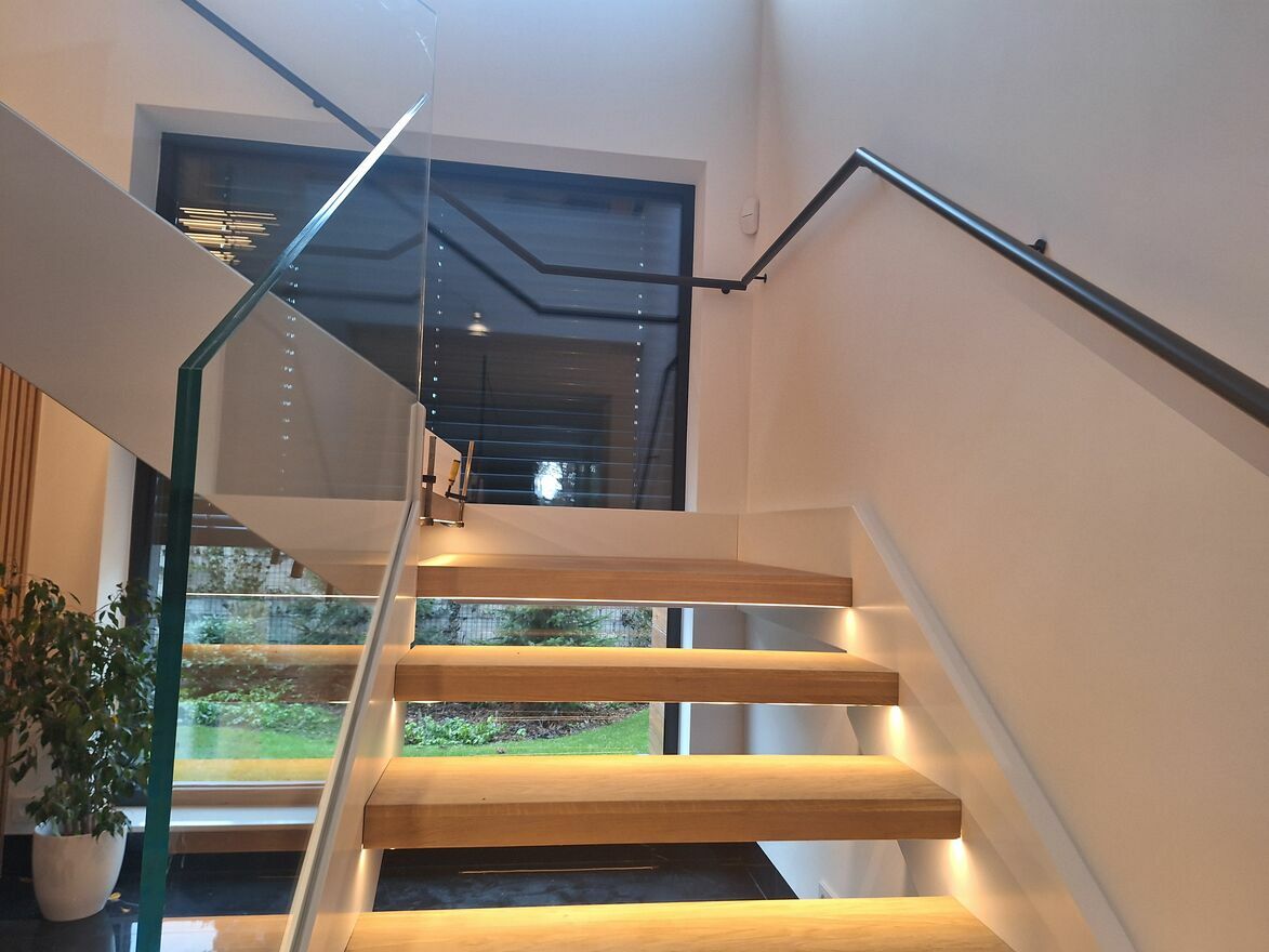 Schody samonośne na konstrukcji stalowej.