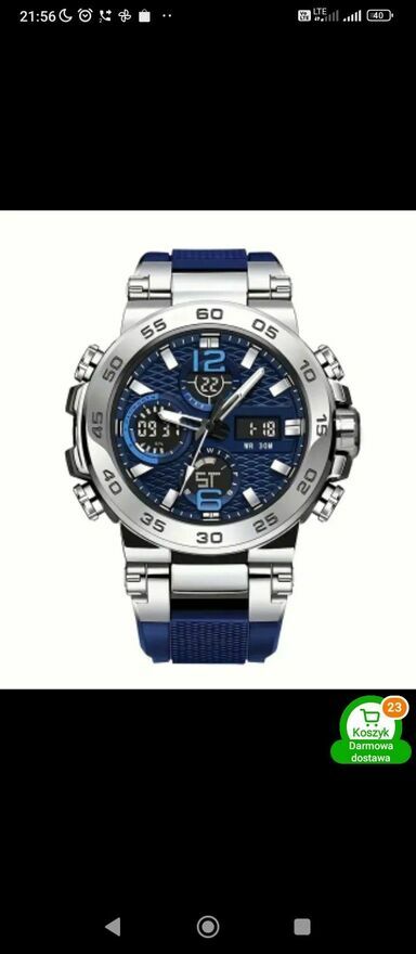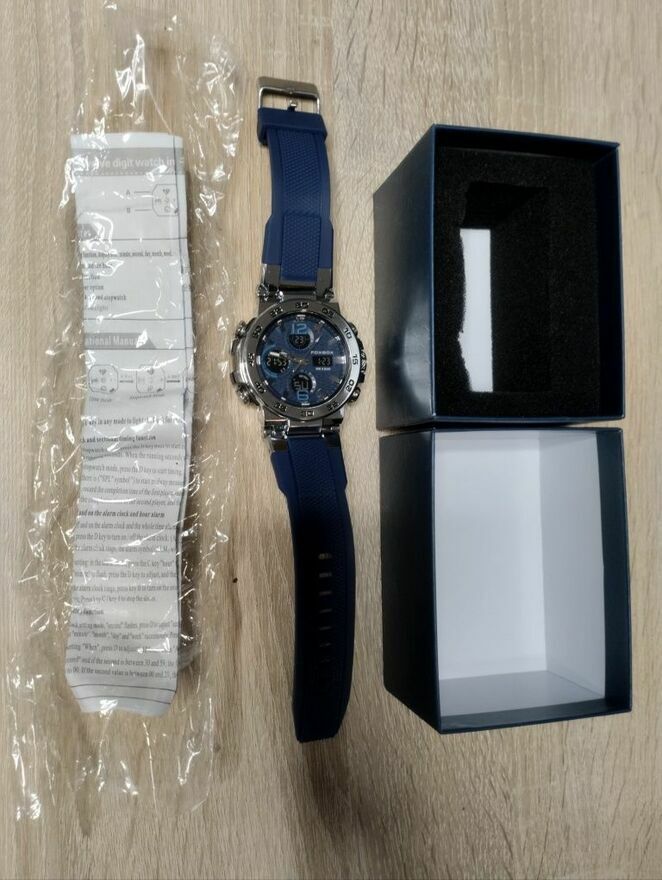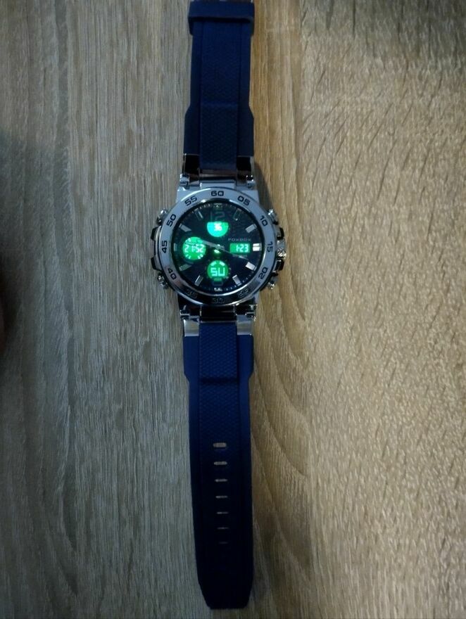 Nowy zegarek na rękę z niebieskim podświetleniem. Dodaje stylu i elegancji do każdego stroju. Idealny dodatek dla osób ceniących sobie precyzję i jakość.Nie trafiony prezent